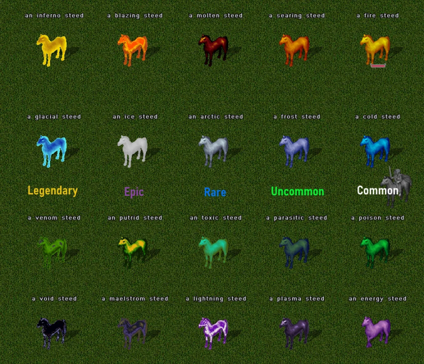 | Tier | Fire Steed | Cold Steed | Poison Steed | Energy Steed |