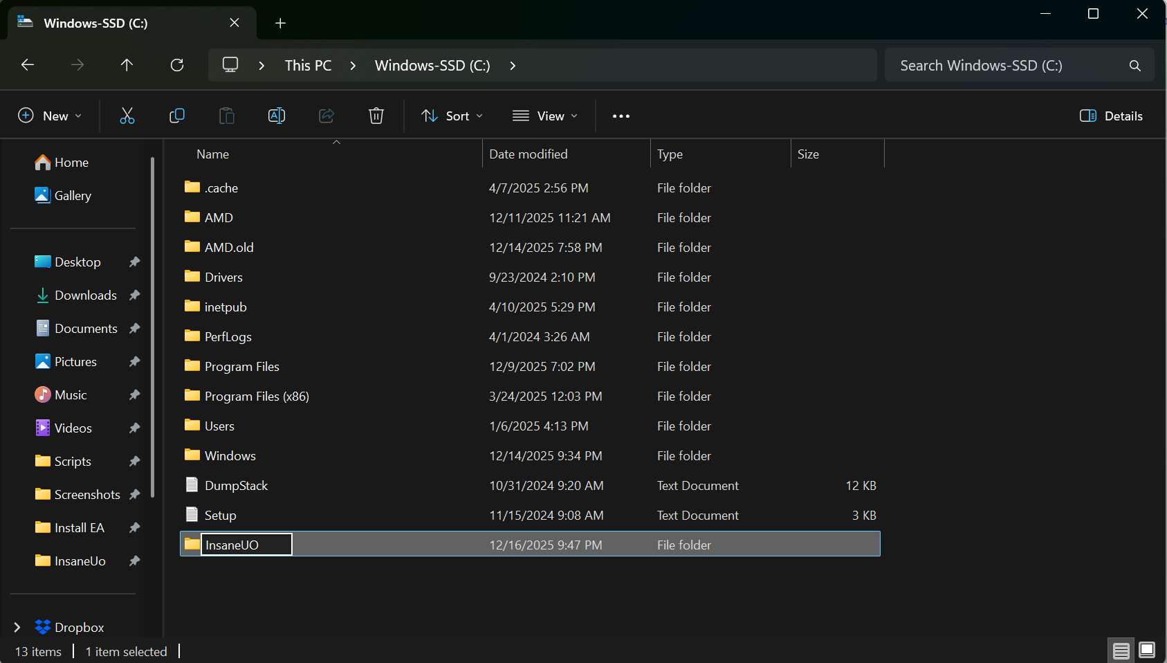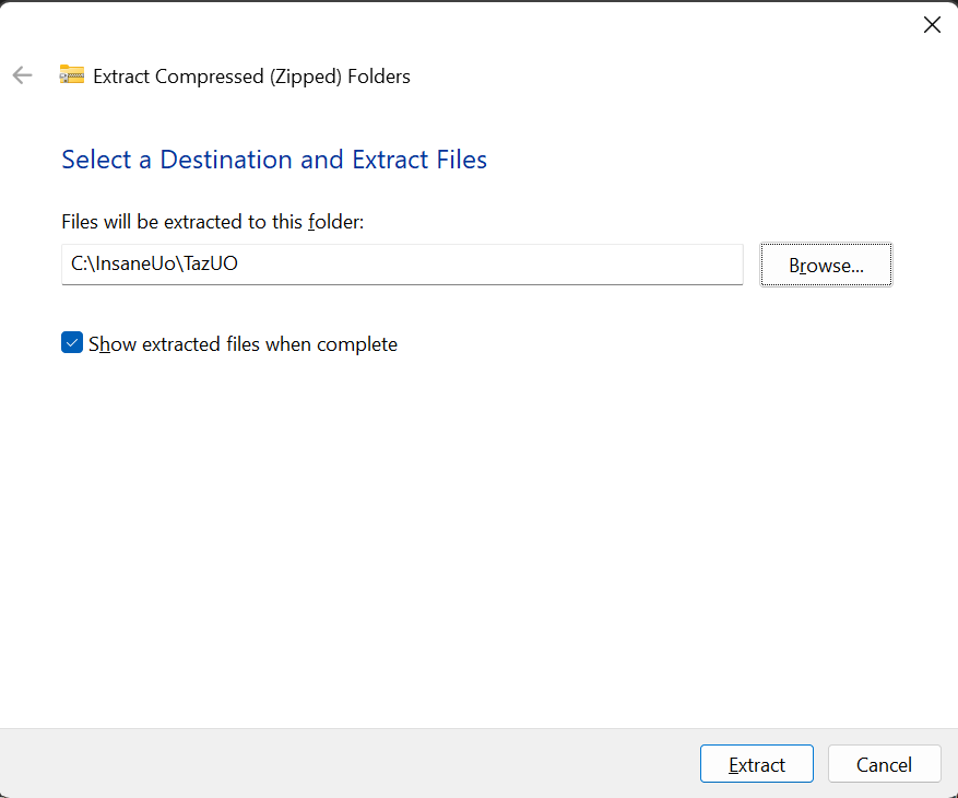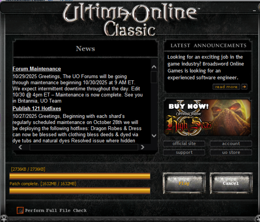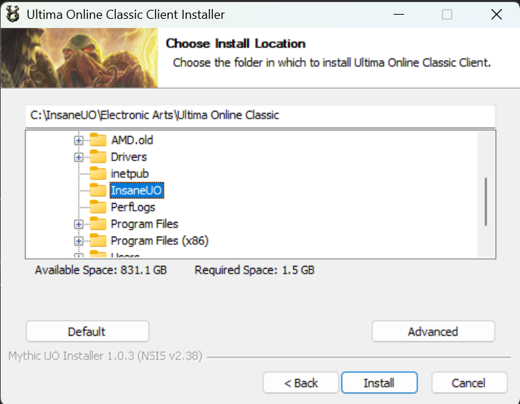 C:\InsaneUO\Electronic Arts\Ultima Online Classic\UO.exe - Once patching is complete, press the "Play" button